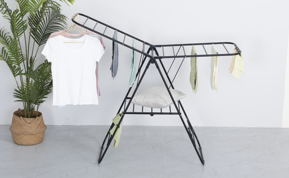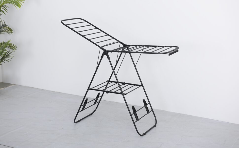- THREE-TIER DRYING CAPACITY – Features adjustable folding wings, a spacious center rack, and bottom shoe holders — perfect for drying clothes, towels, socks, and shoes.